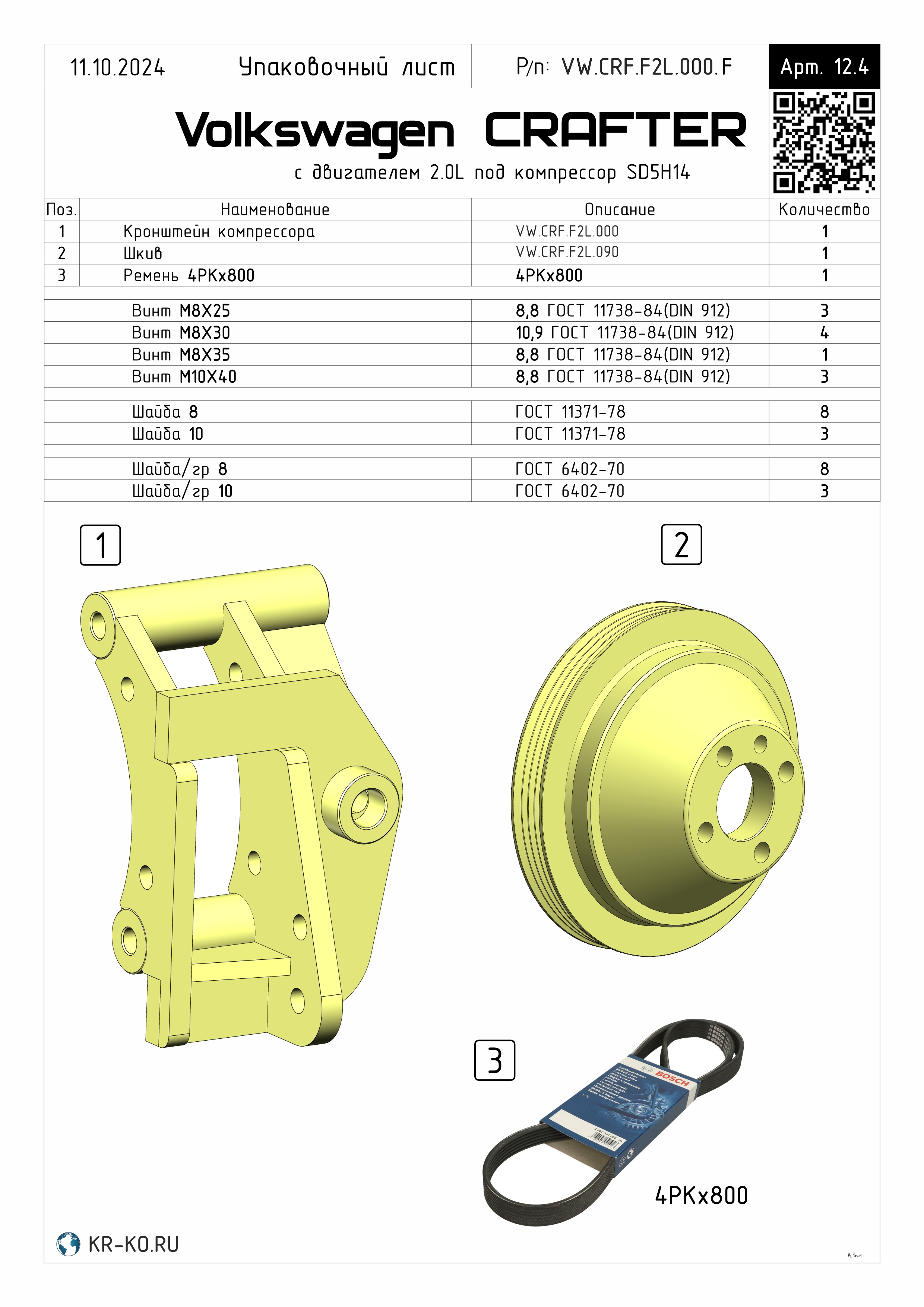 Монтажный комплект для установки компрессора типа Sanden SD 5H14/7H15 (Valeo TM-15, ТМ-16) холодильно-отопительной установки на автомобиль VW Crafter DAU 2.0 Е5 FWD с 2019г. Включает в себя кронштейн компрессора, высокопрочный крепеж для монтажа, схему установки, картонную упаковку. Цена на монтажный комплект указана без учета ремня, полную стоимость уточняйте у менеджера.